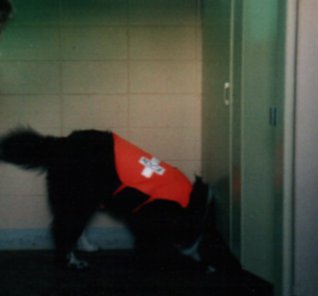 Hello, My name is Stonecrest Emmett Kelly C.d.,SAR. I am a Search and Rescue Newfoundland dog. I am black with white markings. I have my c.d. in obedience and also i am showing in conformation this year. I now am full grown at 170# and not overweight. It is not good for me to be to heavy for my frame. It is hard on my joints, elbows, and spine, and knees.